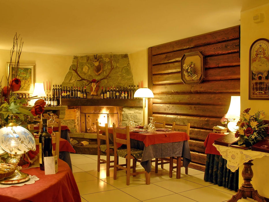 Le restaurant, éclairé par des bougies et réchauffé par le foyer d'une cheminée en pierre, propose une cuisine